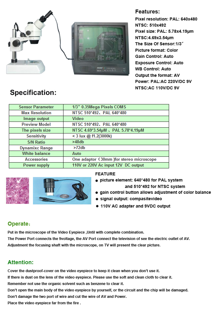 video eyepiece for microscope. It is compatible with all kinds of ocular